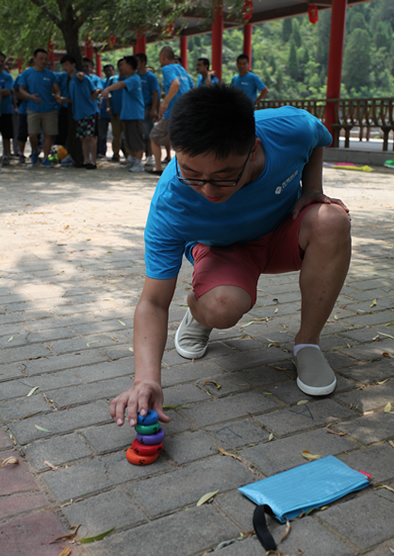 由于當(dāng)日氣溫比較炎熱,室外拓展進行了團隊塔、愛的傳遞等運動量低但需要團隊合作才能過關(guān)的項目。為了能完成教官布置的挑戰(zhàn),各小隊都能緊密協(xié)作,合理分工,整個挑戰(zhàn)過程中除了環(huán)環(huán)相扣的團隊合作,也不乏個人智慧的閃現(xiàn)。