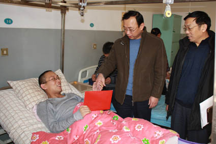 ??? 1月25日,高新區(qū)總工會主席宋豐華、副主席王泰松等人前往濟(jì)南市立三院病房,看望了我公司因意外傷害住院的郭登興,送上?面粉、食用油、牛奶等生活用品和慰問金,并送上新春祝福和節(jié)日問候。