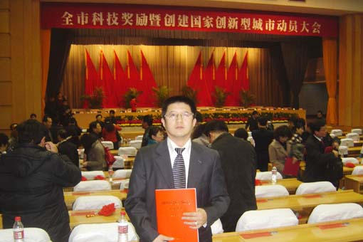 ??? 2010年2月24日上午,濟(jì)南市委、市政府在舜耕會堂隆重召開“全市科技獎勵暨創(chuàng)建國家創(chuàng)新型城市動員大會”。天辰集團(tuán)鋁機(jī)公司研制的“數(shù)控四頭組角機(jī)”榮獲市科技進(jìn)步三等獎。