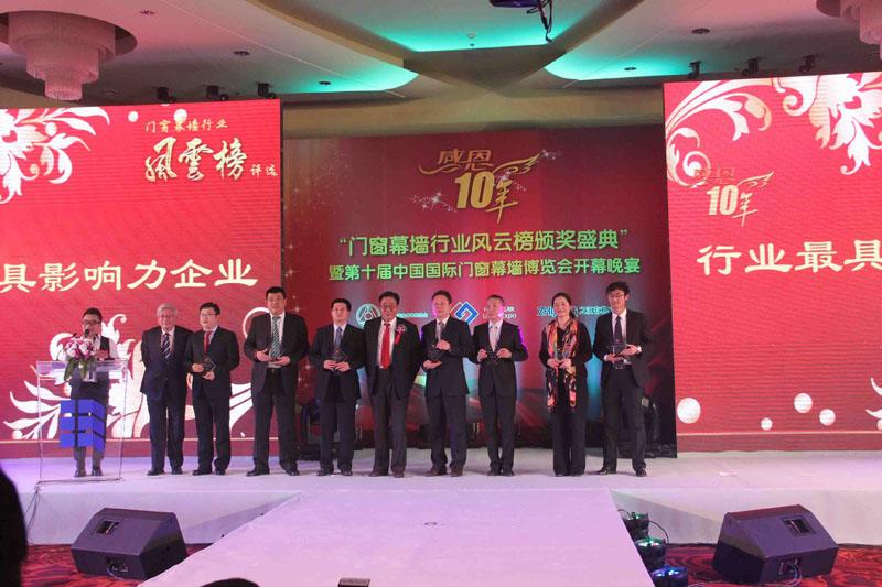 2012年11月23日,由中國建筑金屬結(jié)構(gòu)協(xié)會主辦的“感恩十年——門窗幕墻行業(yè)風(fēng)云榜評選”頒獎盛典在北京舉行。經(jīng)過2個月的激烈角逐,我公司以絕對優(yōu)勢高居加工設(shè)備類榜首,榮獲一呼百應(yīng)大獎——最具影響力企業(yè)獎。 我公司自成立至今,始終把技術(shù)創(chuàng)