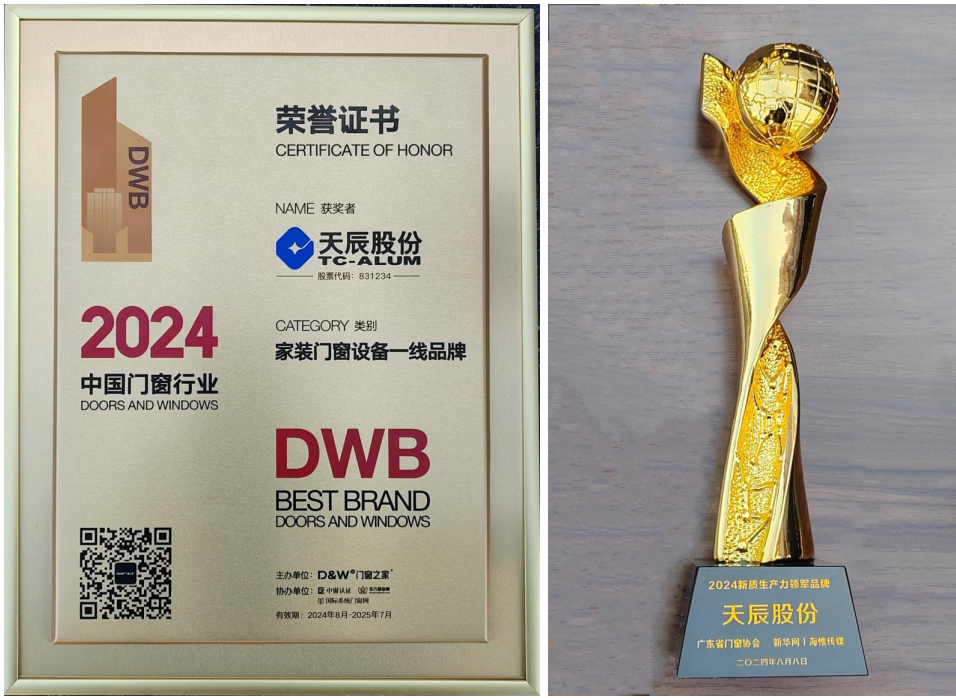 ??在會議的頒獎典禮上,天辰股份榮獲會議晚宴總冠名、“家裝門窗設備一線品牌”以及“新質生產(chǎn)力領軍品牌”的榮譽。